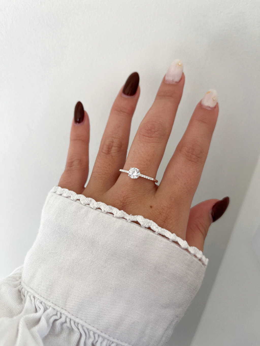 El anillo compromiso de Plata 925 es una joya clásica que nunca pasa de moda. Su diseño minimalista con una piedra central brillante y piedras engarzadas a los lados, realza la belleza natural de tus manos, aportando un toque de sofisticación ideal para cualquier ocasión.