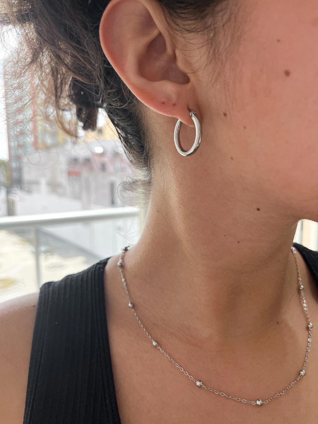 - Collar Ceres (ver descripción de producto en: https://www.alarisaccesorios.com.ar/productos/collar-ceres-acero-quirurgico/) + Argollas 2 cm de diámetro y 2 mm de grosor